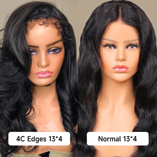 Body Wave 4C Kinky Edges 13x4 Lace Wig With Curly Baby Hair Natural Hairline Glueless Wig