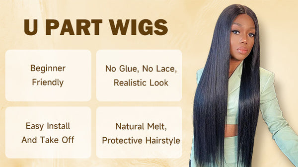 U part wig is a glueless wig, so you don't have to worry about the chemicals in the glue causing allergies and irritation to your sensitive and fragile skin. Gives your scalp a break and blend your own hair, create a natural hairline.